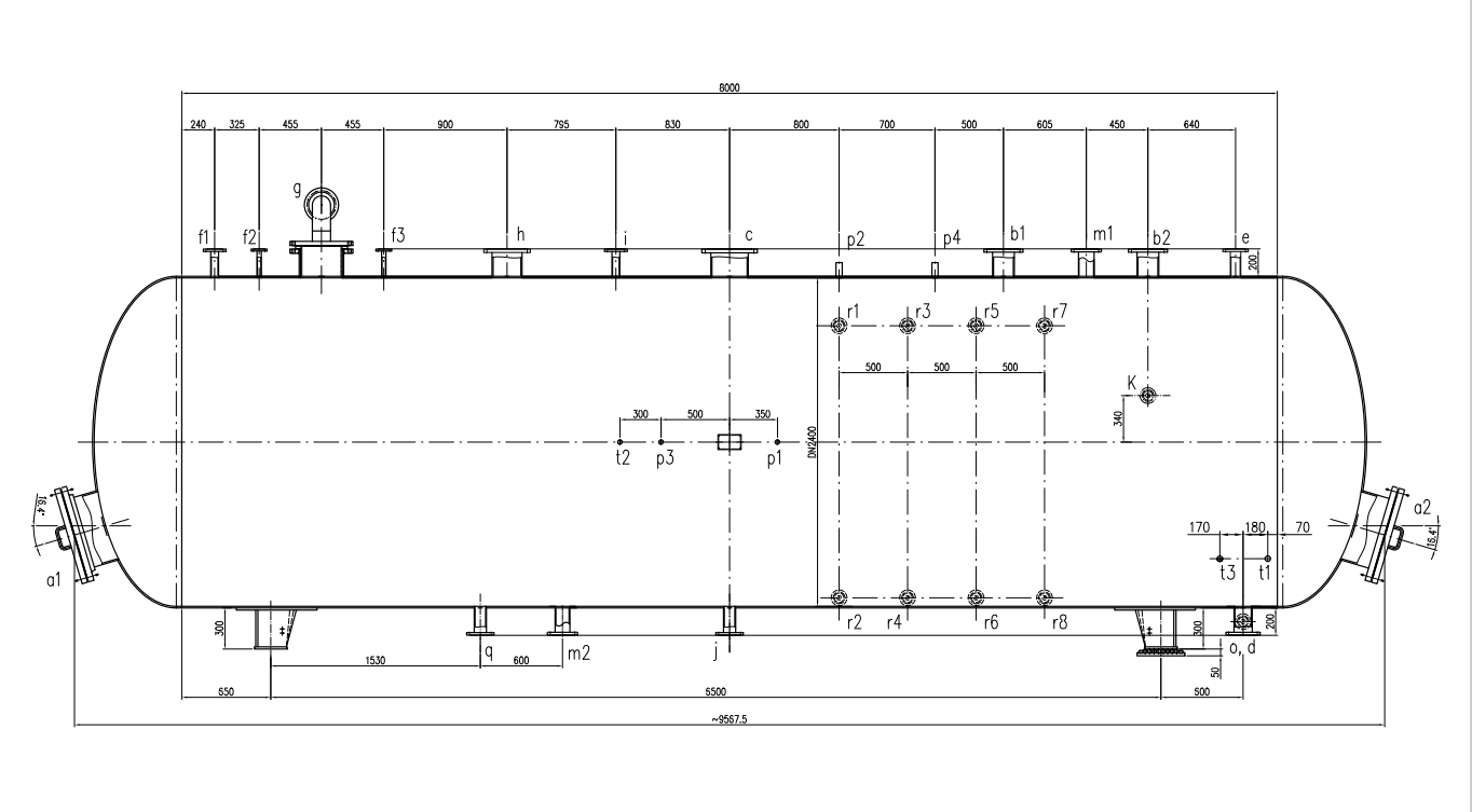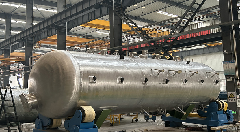 Headless deaerator is mainly composed of head, cylinder, support and internal components. There is a DN600 manhole door on the top of the cylinder for maintenance. There are also two supports on the cylinder, one fixed support and one movable support, with a spacing of 10m. In addition, the water tank is also equipped with an external "T" reinforcement ring to increase the rigidity of the cylinder. In order to prevent excessive pressure inside the deaerator, two DN200 safety valves are also installed on the cylinder. In addition, there are balance containers and overflow devices for measuring water level.